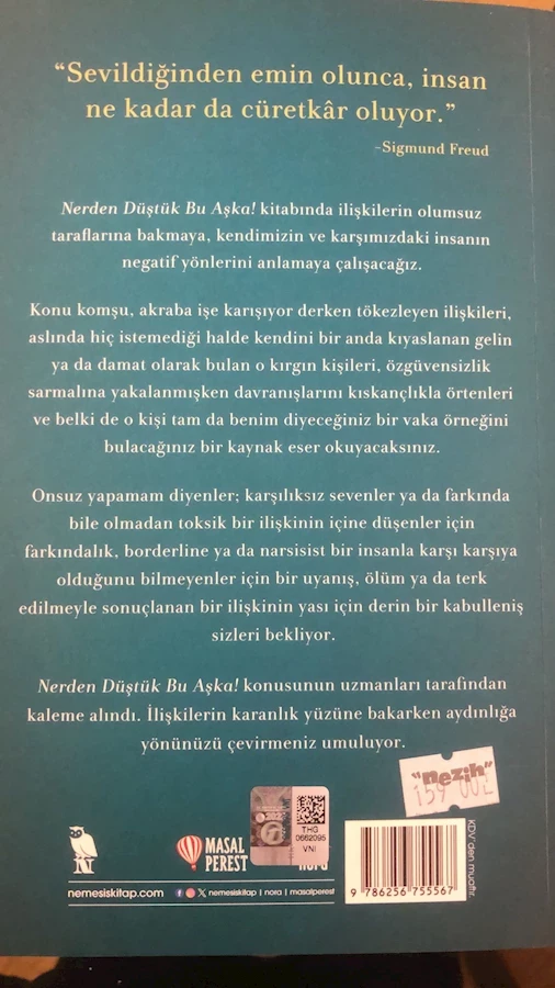 Nerden Düştük Bu Aşk’a konusunun uzmanları tarafından kaleme alınarak,İnsanların İlişkilerinde karanlık yüzlerine bakarken aydınlığa yönlerini çevirmelerini umuyorlar. Prof.Dr.Gökben Hızlı Sayar ve konusunda uzman arkadaşları özet olarak,”Konu komşu,akraba işe karışıyor derken tökezleyen ilişkileri, aslında hiç istemediği halde kendini bir anda kıyaslayan gelin ya da damat olarak bulan o kırgın kişileri,özgüvensizlik sarmalına yakalamışken davranışlarını kıskançlıkla örtenleri ve belki de o kişi tam da benim diyeceğiniz bir vak’a örneğini bulacağınız bir kaynak eserlerini kaleme aldılar. keyifle okuyacağınız “Nerden Düştük Bu Aşk’a” keyifle bir solukta okuyacağınız bir yapıt tadında.