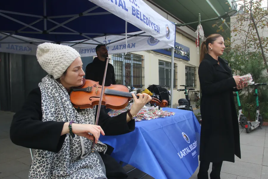 Yeni yıl kutlamaları kapsamında Marmaray’ın Atalar ve Kartal İstasyonları ile Ankara Caddesi’nde binlerce yılbaşı şapkası ve şeker dağıtıldı. Kartal Belediyesi Kültür ve Sosyal İşler Müdürlüğü’nün organizasyonuyla gerçekleşen etkinlikte keman sanatçıları sevilen şarkıları seslendirerek kutlamalara renk kattı.