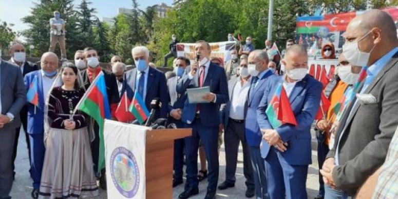 Ankara’da Kars Ardahan Iğdır Dernekler Federasyonu (KAI-FED) Dr. Erdoğan Yıldırım yaptığı açıklamada”Ankara KAI Federasyonu olarak her koşulda Can Azerbaycan’ın yanında olduk ve olmaya devam edeceğiz. Ermenistan’ın son dönemde Azerbaycan’a yaptığı saldırılar sonucu şehit olan kardeşlerimizi andık kardeş Can Azerbaycan devletine ve milletine Ankara Kızılay’daki Güvenpark’ta basın açıklamamızla desteğimizi açıkladık. Ermenistan’ın 30 yılı aşkın işgal altında tuttuğu Yukarı Karabağ’ın yanında Azerbaycan topraklarında sivil yerleşim yerlerine ve askerlerine yaptığı yeni saldırılar ile başka amaç ve emellerde olduğu açıkça bellidir. Ermenistan’ın yaptığı bu saldırıları şiddetle kınıyor ve gerçekleştirilen saldırılar sonucu şehit olan kardeşlerimize Allah’tan rahmet kardeş ülke Azerbaycan Devleti’ne başsağlığı diliyoruz” dedi.