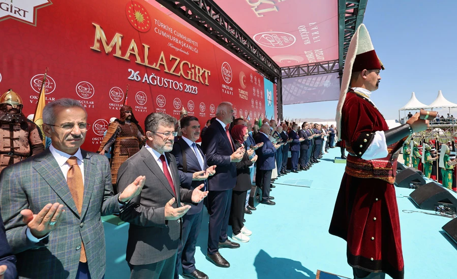Malazgirt'le birlikte burayı da tekrar canlandırarak ecdada vefalarını göstermenin gayreti içinde olduklarını dile getiren Cumhurbaşkanı Erdoğan, şu değerlendirmede bulundu: "Malazgirt'teki şu görüntü, bize sahip olduğumuz tarihin ve kültürün zenginliğini, derinliğini, gücünü ve en önemlisi devamlılığını hatırlatıyor. Bu topraklar bin yıldır üzerinde dalga dalga yükselen, 'Ya Allah, bismillah, Allahuekber' nidalarıyla feyizleniyor, bereketleniyor. Bu topraklarda yaşayan insanlar kökenlerine, meşreplerine, farklılıklarına bakmaksızın hep aynı ulvi gaye uğrunda kenetleniyor, bütünleşiyor."