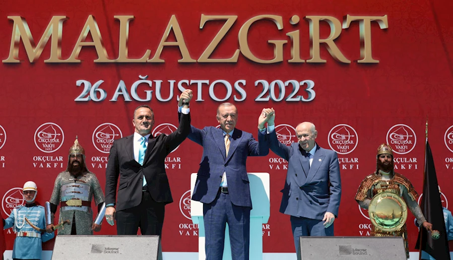 Malazgirt Zaferi'nin 952. yıl dönümü vesilesiyle tarihin önemli dönüm noktalarından birine şahitlik eden mübarek topraklarda tekrar bir arada olduklarını belirten Cumhurbaşkanı Erdoğan, "Sözlerimin hemen başında Anadolu'yu bizlere vatan hâline getiren tüm kahramanlarımızı, şehitlerimizi, gazilerimizi, gönül sultanlarımızı rahmetle, şükranla yâd ediyorum. Sultan Alparslan'ın ve ordusunda yer alan her bir neferin bize emaneti olan bu toprakları kanımızın son damlasına kadar koruma azim ve kararlılığımızı buradan bir kez daha ilan ediyoruz" diye konuştu.