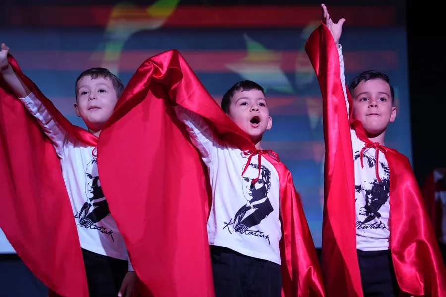 Kartal Belediyesi’ne bağlı kreşlerde de minikler Cumhuriyet Bayramı’nı renkli gösterilerle kutladı. Uğur Mumcu Kültür Merkezi’nde düzenlenen etkinlikte, minikler tiyatral performanslarıyla büyük alkış aldı. Kırmızı-beyaz süslemeler ve Türk bayraklarıyla donatılan salon, bayram havasına büründü.