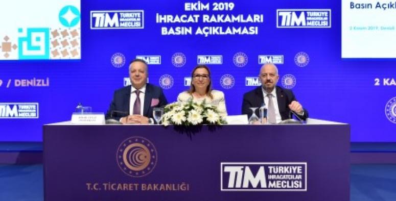 TİM Başkanı İsmail Gülle, “2019 yılında küresel ticaretin içerisinden geçtiği zorlu sürece rağmen Türkiye olarak ihracatta olumlu bir grafiğe imza atıyoruz. Yakın dönemde Barış Pınarı Harekatımız sonucunda ülkemize yönelik yaptırım tehditlerine rağmen ihracatımız başarılı seyrini sürdürdü. İhracatçılarımızın dinamizmleri ve stratejik kararları sayesinde ihracatımız, doğru rota tespitleri ile rakiplerimizin üzerinde artışlar sergilemeye devam ediyor. Sayın Bakanımız öncülüğünde, ihracatımızda hayata geçirilen atılımlar ve dijitalleşme adımları rekorlara uygun zemin hazırlıyor. Daha çok çalışıp, katma değer odaklı üretim bilinci ile 226,6 milyar dolarlık 2023 yılı ihracat hedefimizi rahatlıkla aşacağız” dedi.Türkiye İhracatçılar Meclisi (TİM), Ticaret Bakanı Ruhsar Pekcan’ın katılımıyla ekim ayı geçici dış ticaret verilerini, TİM’in açık iletişim platformu niteliğindeki bölgesel meclislerinin altıncısı olan “TİM Denizli Meclisi’ni düzenlediği Denizli’de açıkladı. Ekim ayında ihracat, Genel Ticaret Sistemi’ne (GTS) göre 16 milyar 336 milyon dolar oldu. Yılın ilk 10 ayında ise ihracat yüzde 2,1 artış ile 149 milyar dolara, son 12 aylık ihracat da 180 milyar dolara ulaştı.