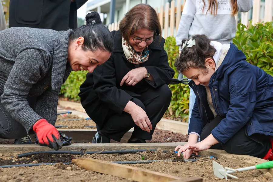 Sonrasında çocuklarla birlikte ekimin yapılacağı alana geçen Köymen, bakla ve bezelye içeren “Ata Tohum”larını toprağa ekti. Çocuklara burada “Ata tohumu nedir?”, “Toprak neden önemlidir?”, “Arı ve uğur böceği gibi faydalı böcekler”, “Yaprak bitkileri gibi zararlı böcekler”, “Bitki kardeşliği” ve “Tohumun geleceğimiz olması” konularında bilgi verildi.